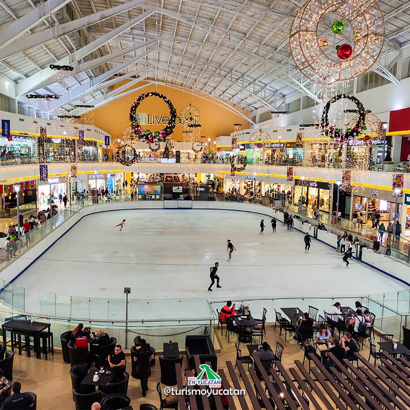 Plaza Galerías también se suma a los festejos, solo que a difiera de todas las demás sus actividades son diferentes, ya que al contener una pista de hielo el espectáculo se realiza en la pista de patinaje, el talento de los deportistas brinda un show sin igual y atare a muchas familias yucatecas.