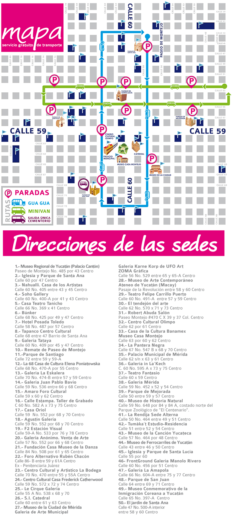 Mapa de transporte gratuito y sedes de los eventos